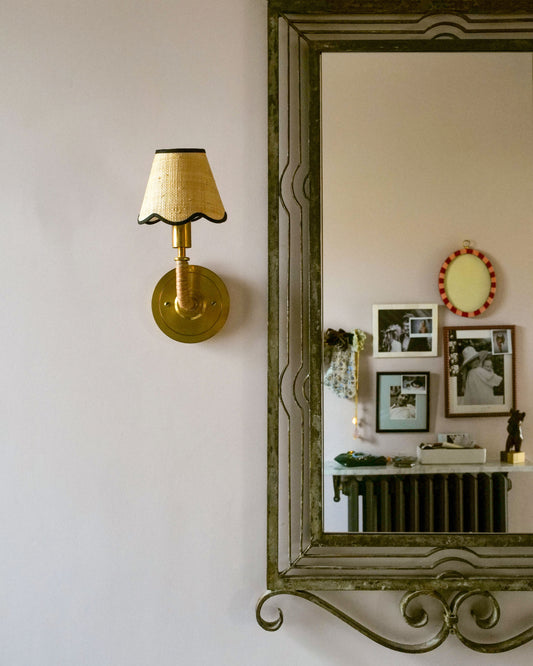 Raffia Scallop Lampshade, Cream Trim, Mini